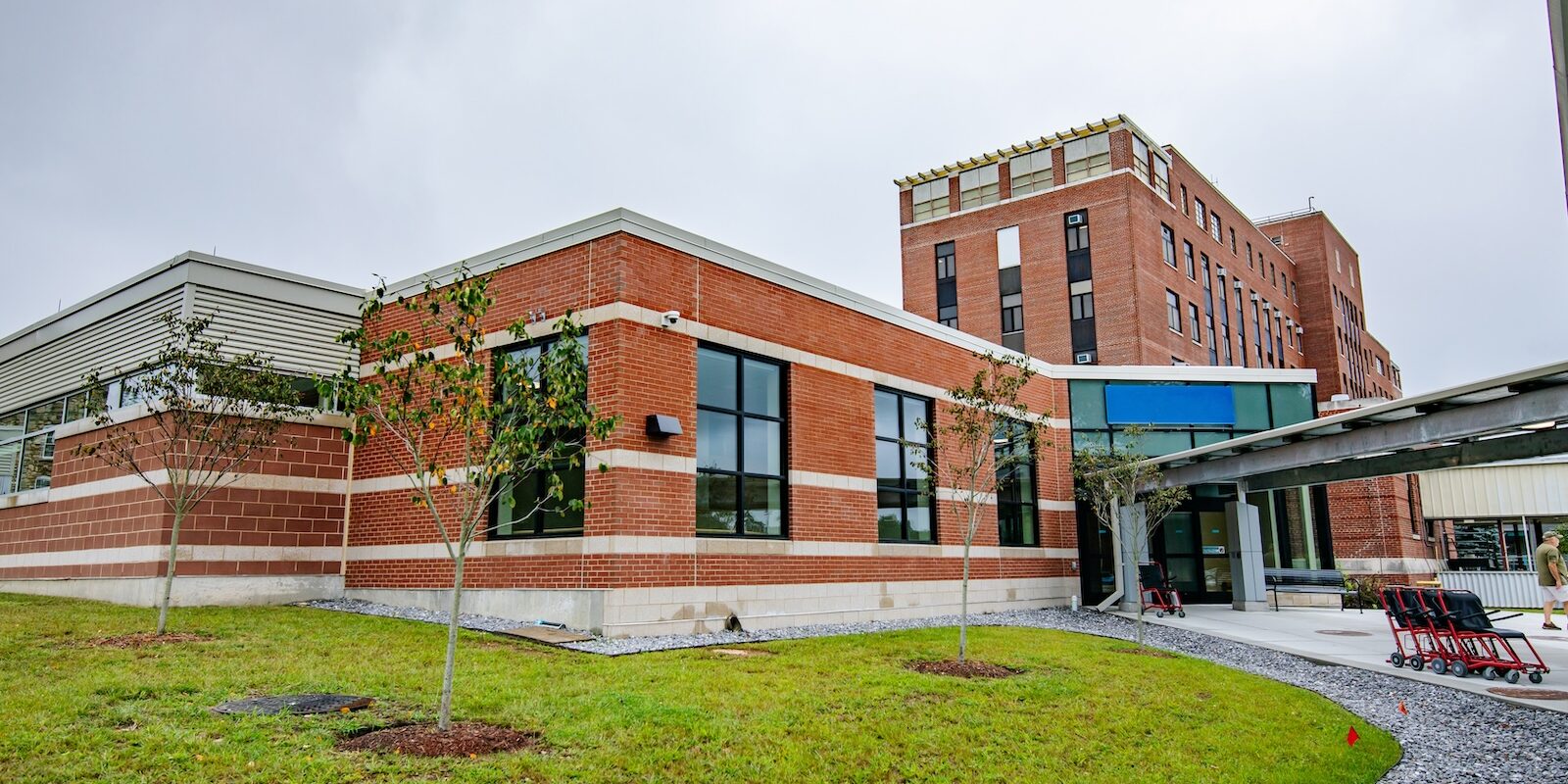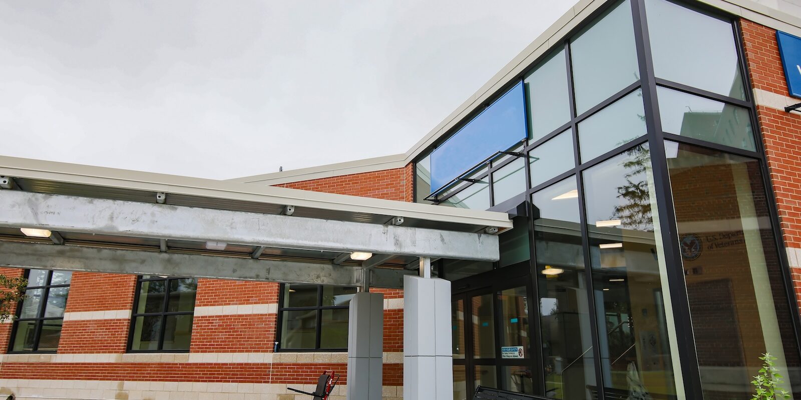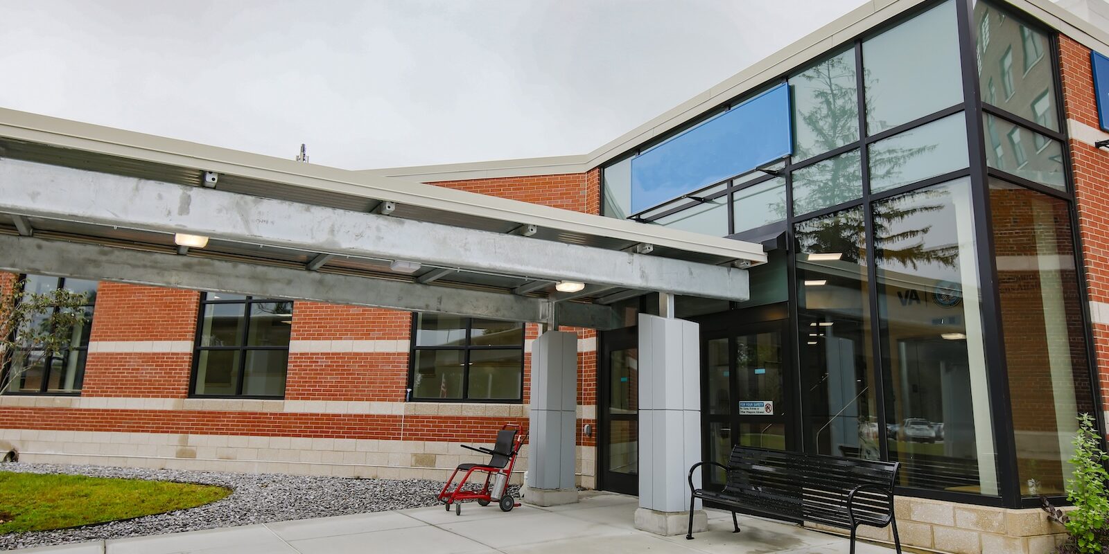In December 2019, Lockheed Architectural Solutions, Inc. was awarded the opportunity to improve the accessibility, safety, and aesthetics of the Manchester VA Medical Center Building 1’s Mountain Entrance. The project added a vehicle drop off area, canopy, and handicap vestibule area. Aspects of the work included an Assa Abloy automatic sliding entrance, auto operated swing doors, multiple new storefront windows, and a curtain wall façade. A CRL glass handrail was installed at the stairway along with hollow metal doors for storage areas within the vestibule. Lockheed partnered with US Aluminum using their anti-terrorism and force protection systems required for many aspects of the project, which made this particular project challenging and unique.
