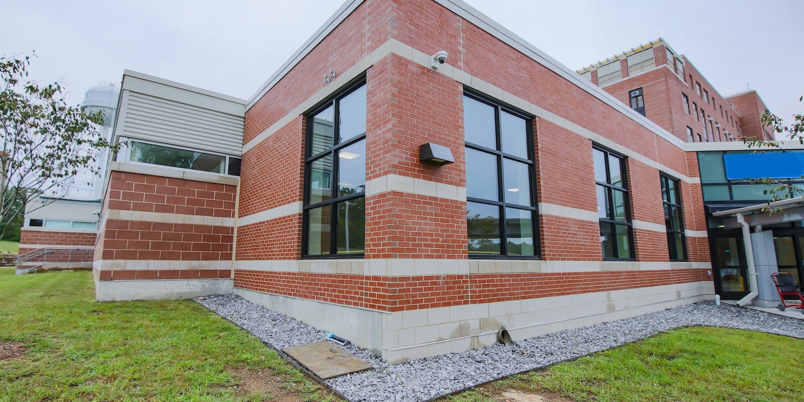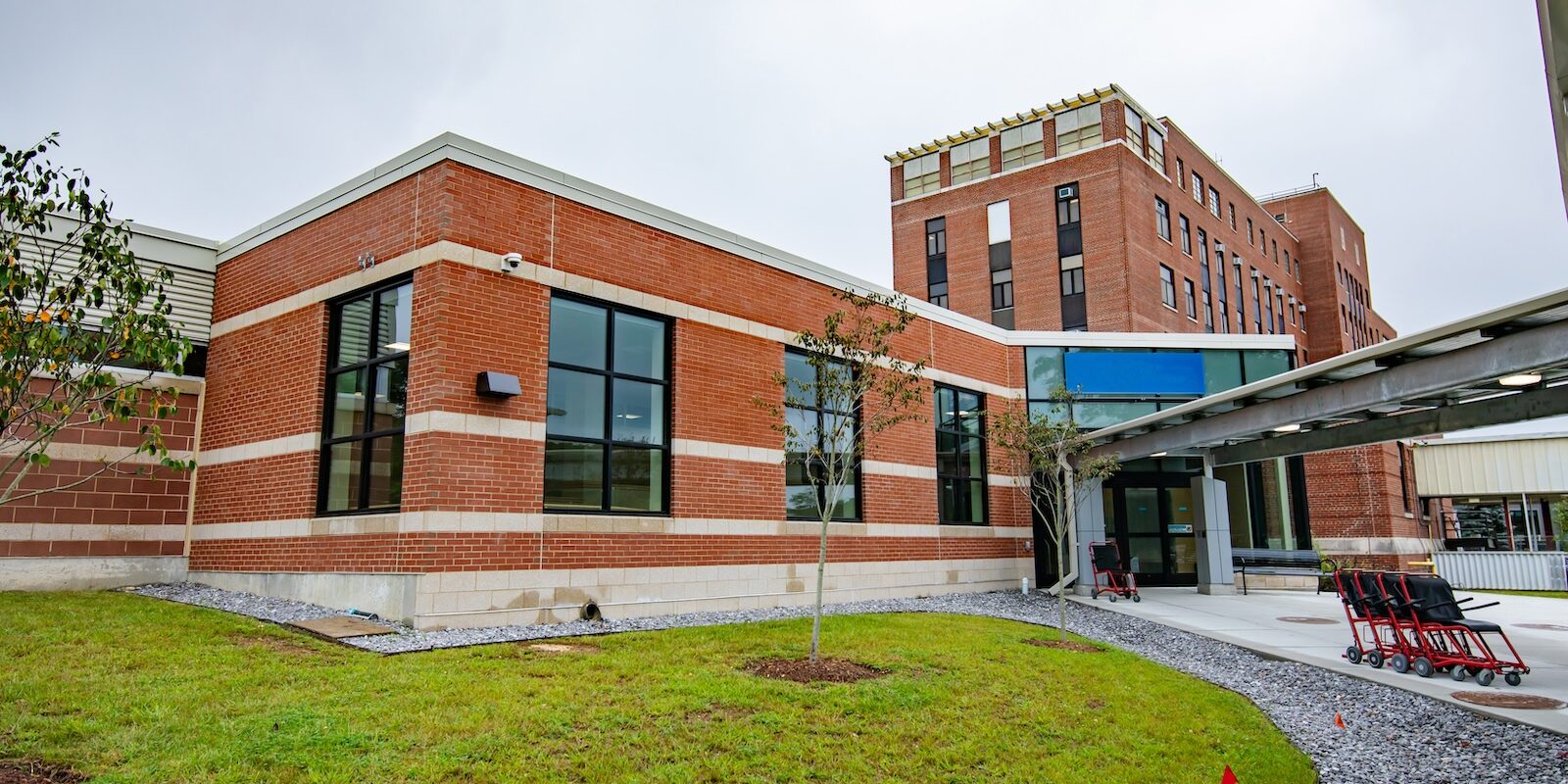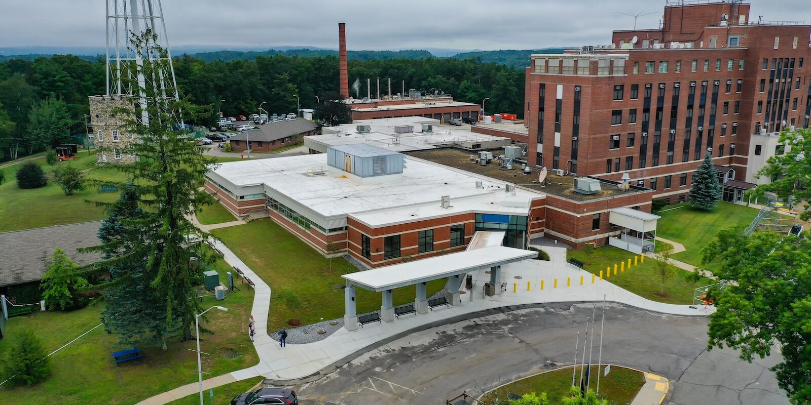 In December 2019, Lockheed Architectural Solutions, Inc. was awarded the opportunity to improve the accessibility, safety, and aesthetics of the Manchester VA Medical Center Building 1’s Mountain Entrance. The project added a vehicle drop off area, canopy, and handicap vestibule area. Aspects of the work included an Assa Abloy automatic sliding entrance, auto operated swing doors, multiple new storefront windows, and a curtain wall façade. A CRL glass handrail was installed at the stairway along with hollow metal doors for storage areas within the vestibule. Lockheed partnered with US Aluminum using their anti-terrorism and force protection systems required for many aspects of the project, which made this particular project challenging and unique.