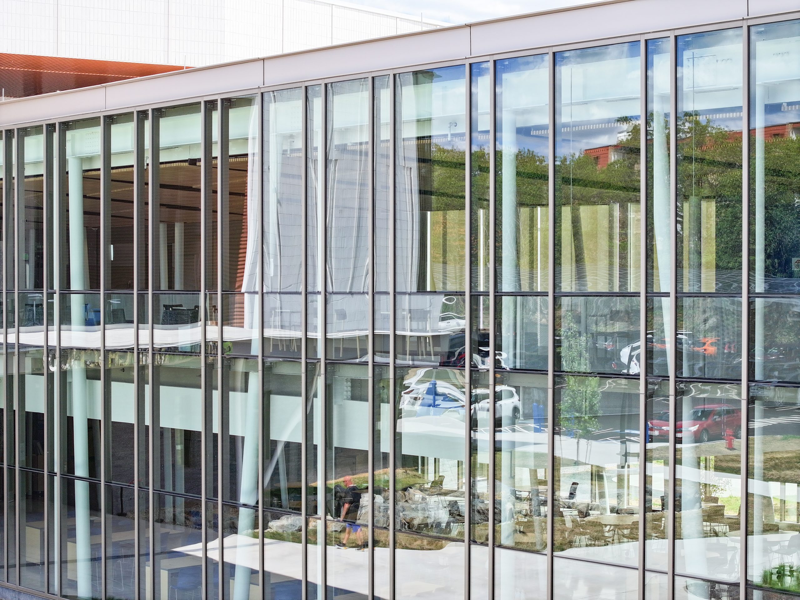 Lockheed fabricated and supplied major exterior and interior envelope systems including approximately 11,000 sf of EFCO 5600X curtainwall, 7,000 sf of Oldcastle insulated exterior glass, interior glazing systems tallying 5,000 sf, 16 custom perforated sunshades from Moz, 2,000 sf of Alucobond ACM panels, and windows and skylights that enhance daylighting and security glazing systems for critical areas. These elements help define the building’s clean, modern aesthetic while contributing to its ambitious energy and daylighting goals.