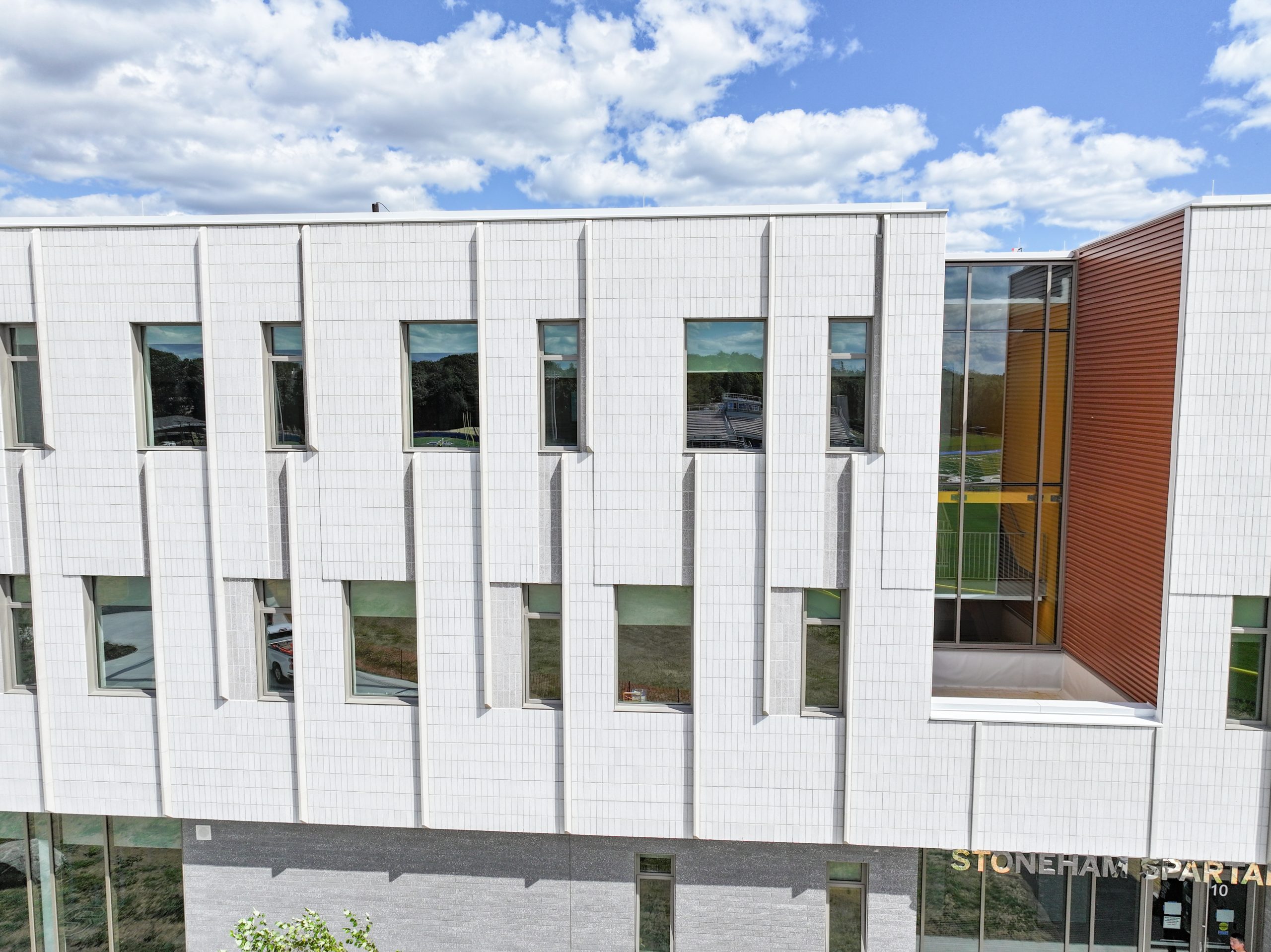 Lockheed Architectural Solutions, Inc. played a key role in the new build of Stoneham High School, a forward-looking facility designed to deliver both educational excellence and high-performance sustainability. The project is targeting zero on-site fossil fuel use and net-zero energy performance.